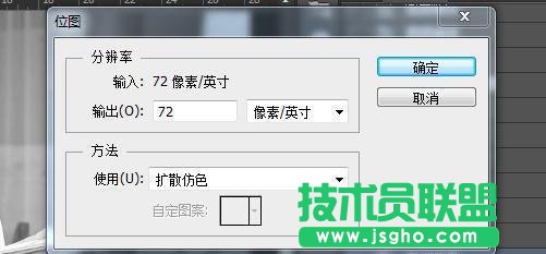 (4) 在“方法”~“使用”中分別包含以下幾個模塊:50%闊值、圖案仿色、擴散仿色、半調網屏、自定圖案,可根據需求進行調整。