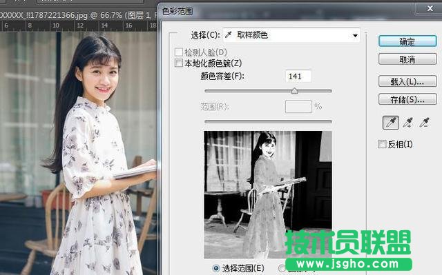 (9)“色彩范圍命令”打開色彩范圍按鈕,移動鼠標到圖像窗口中單擊,選擇要選取的顏色,按下SHIFT鍵可加選,按下ALT鍵可減選。對于顏色容差,較低將限制色彩范圍,較高將增大色彩范圍。