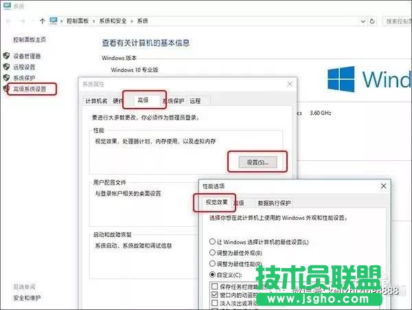 首先右擊“此電腦”“屬性”,然后在彈出對(duì)話框中點(diǎn)擊“高級(jí)系統(tǒng)設(shè)置”“高級(jí)”“設(shè)置”,接下來(lái)點(diǎn)擊“視覺(jué)效果”“自定義”,通過(guò)啟閉里面的項(xiàng)目,就可以自由調(diào)整Win10的界面動(dòng)畫(huà)過(guò)渡了。