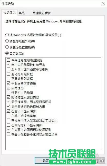 這里小編想多說(shuō)兩句,網(wǎng)上總能看到一些教程,建議勾選“調(diào)整為最佳性能”。不可否認(rèn)這的確算是一個(gè)“快招”,但同時(shí)也會(huì)損失很多炫酷的效果。試問(wèn),讓你天天面對(duì)一個(gè)20年前的老舊桌面,你還會(huì)有感么?