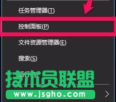 1、右鍵點擊系統桌面左下角的【開始】,在菜單中點擊【控制面板】;