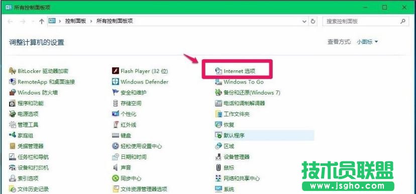 2、在打開的控制面板中,左鍵雙擊Internet選項;