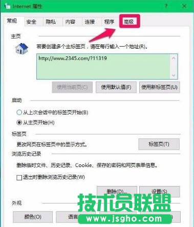 3、在Internet 屬性窗口,點擊【高級】;