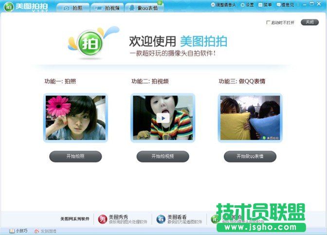 美圖拍拍是一款兼容所有主流攝像頭的自拍軟件。1秒鐘就能自拍可愛大頭貼。把電腦變成照相機,輕松自拍不求人。海量邊框素材,可愛大頭貼隨心拍。實時預(yù)覽拍攝效果,真正所見即所得。還能用“美圖秀秀”處理超炫圖片特效。
