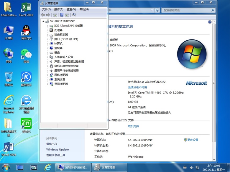 技術員 GhostWin7Sp1x64 裝機版2022 ==