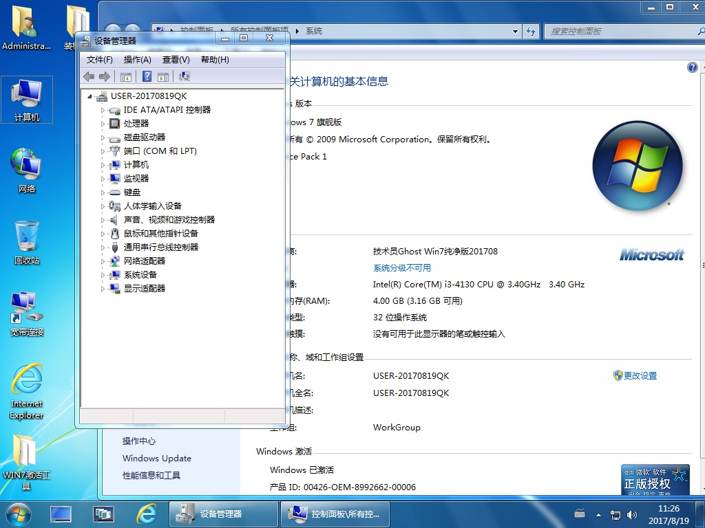 技術員 Ghost Win7 Sp1 x86 純凈版 201709