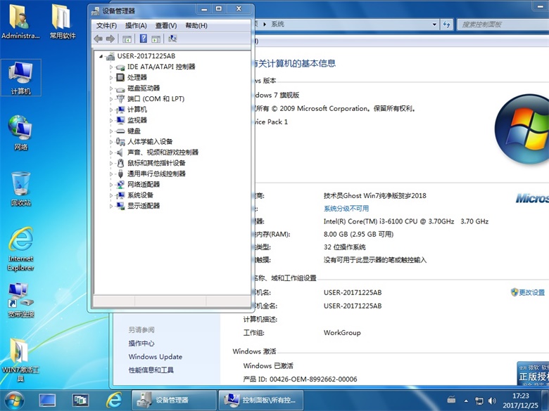 技術員 GhostWin7Sp1x32 純凈版賀歲2018 ==