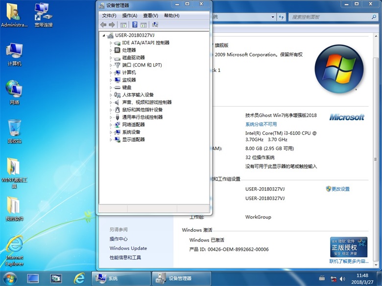技術員 GhostWin7Sp1x32 純凈增強版2018 ==