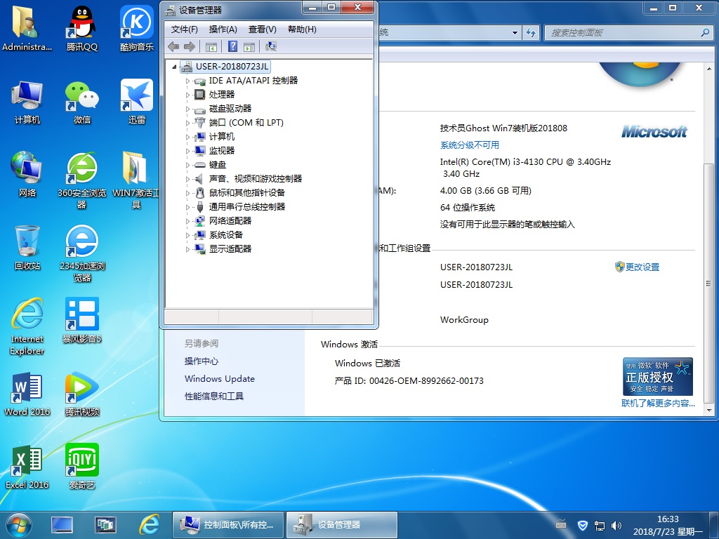 技術(shù)員 GhostWin7Sp1x64 裝機(jī)版201818 ==