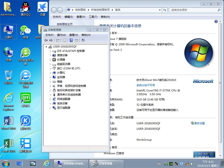 技術(shù)員 GhostWin7Sp1x86 裝機版201810New ==