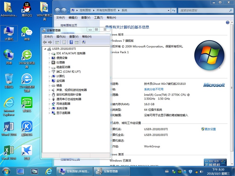 技術員 GhostWin7Sp1x64 裝機版201810New ==