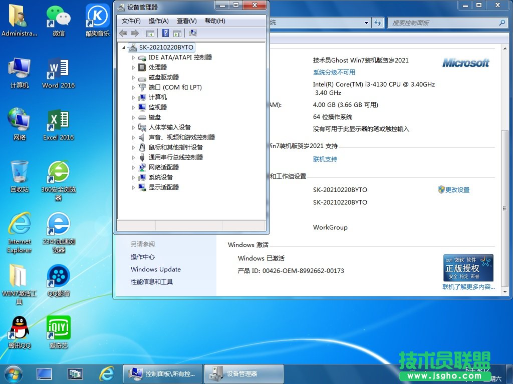 技術員 GhostWin7Sp1x64 裝機版賀歲2021 ==