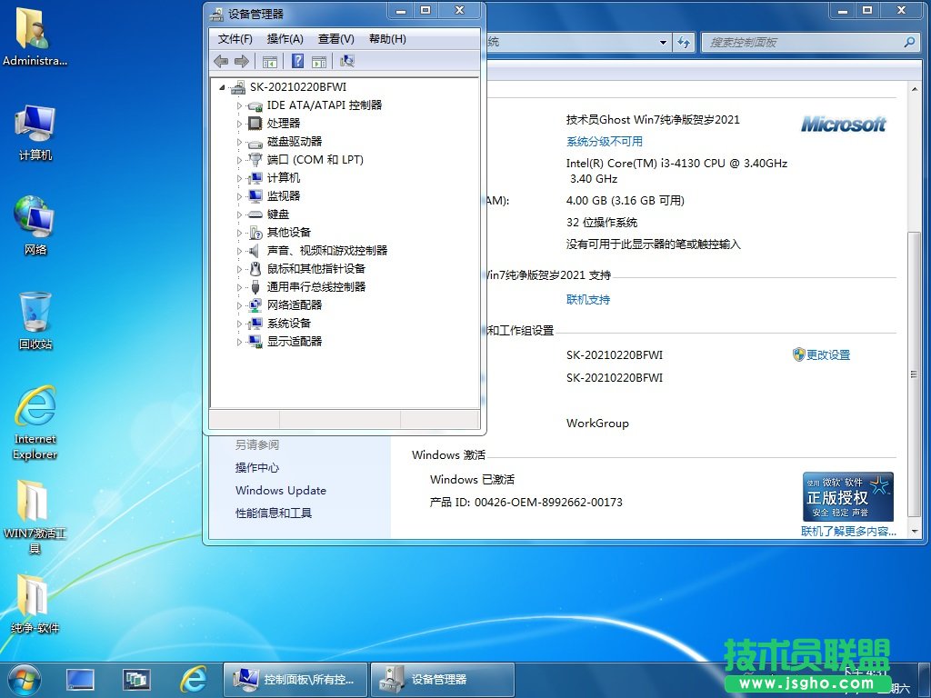 技術員 GhostWin7Sp1x86 純凈版賀歲2021 ==