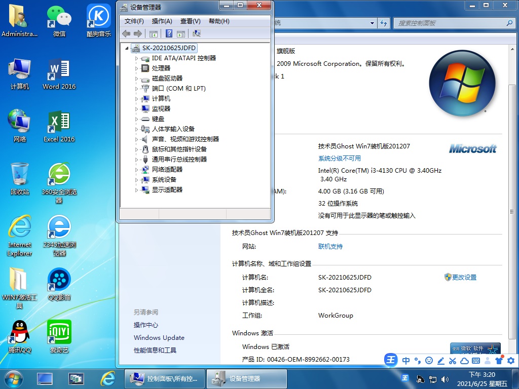 技術員 GhostWin7Sp1x86 裝機版202107 ==