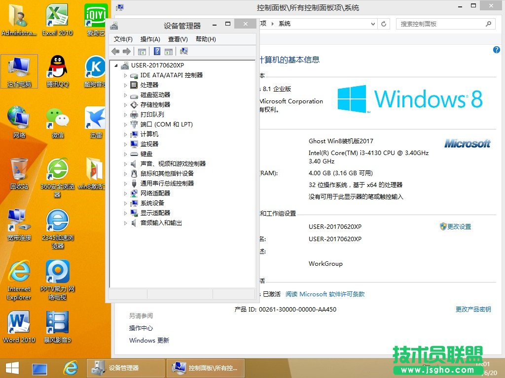 15、集成了自2017年流行的各種硬件驅動,首次進入系統即全部硬件已安裝完畢。